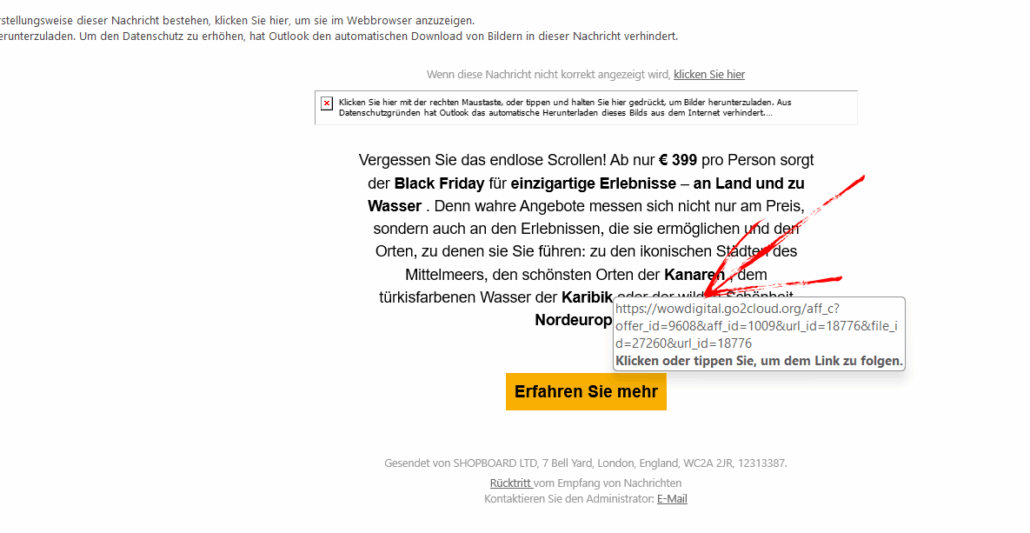Wenn Sie unsicher sind, googeln Sie die Domain mit dem Zusatz „Erfahrungen“. Falls auf den ersten Plätzen nichts Seriöses zu finden ist, löschen Sie die Mail ohne weitere Handlungen – oder besser: Markieren sie als Spam.